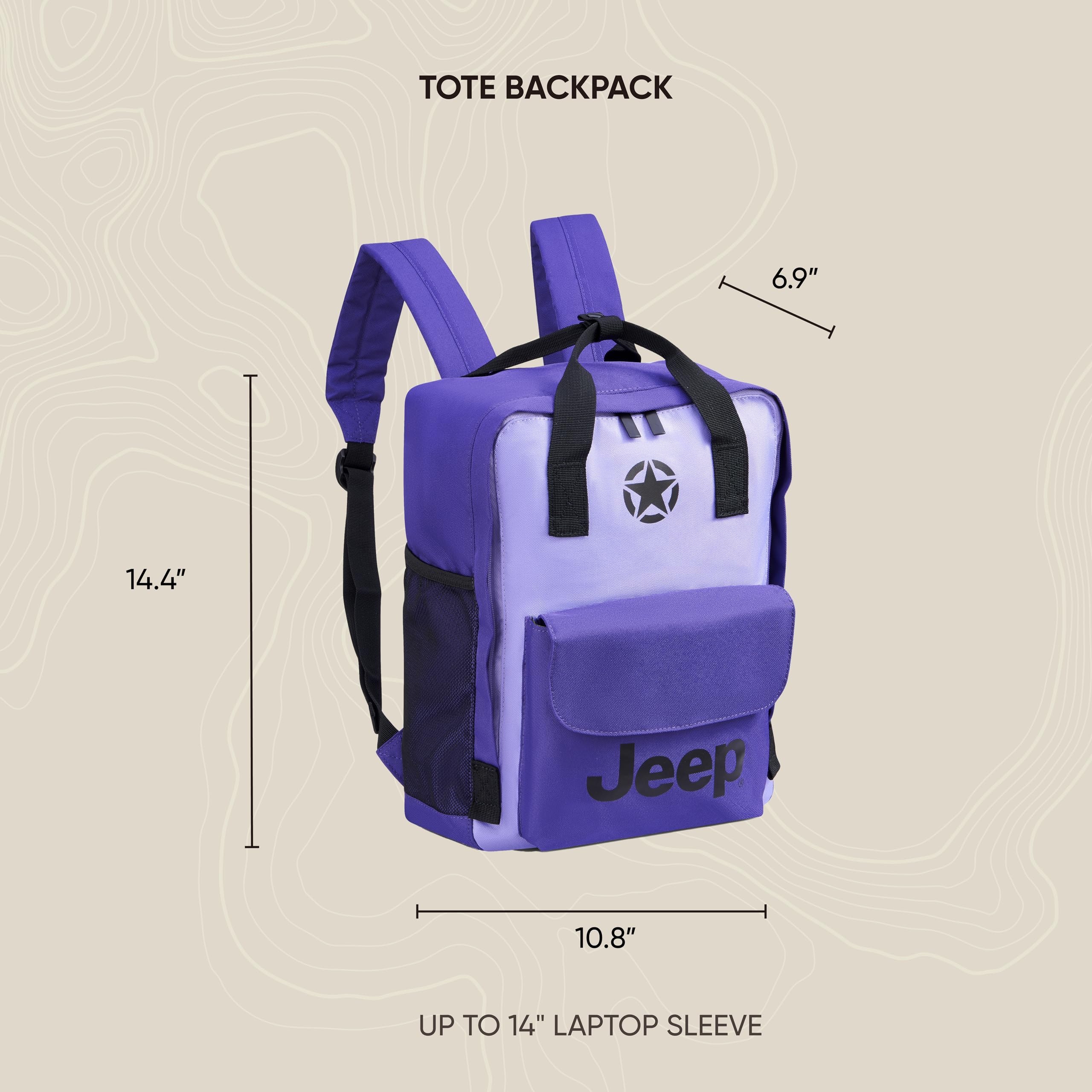 - Engineered with durable, recycled polyester to seamlessly transition from school or work to outdoor adventures with a classic rugged Jeep style